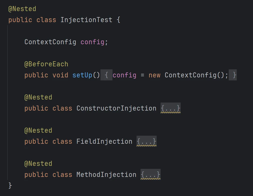 ContainerTest 中的部分测试用例类现在只会在 InjectionTest 中使用,应该使用 Move Class 方法重构,将这些类移动到 InjectionTest 中。